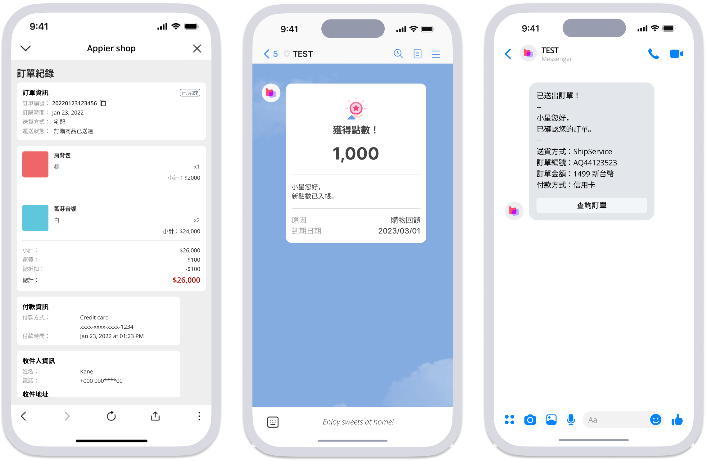 完成 BotBonnie 聊天機器人和引領業界的電商平台之間的整合作業,開始提供個人化的顧客體驗。使用者綁定帳號後,您便能使用交易紀錄查詢、自動傳送訂單相關的通知、顯示會員卡和傳送補貨提醒等功能,以提升顧客互動和支援。