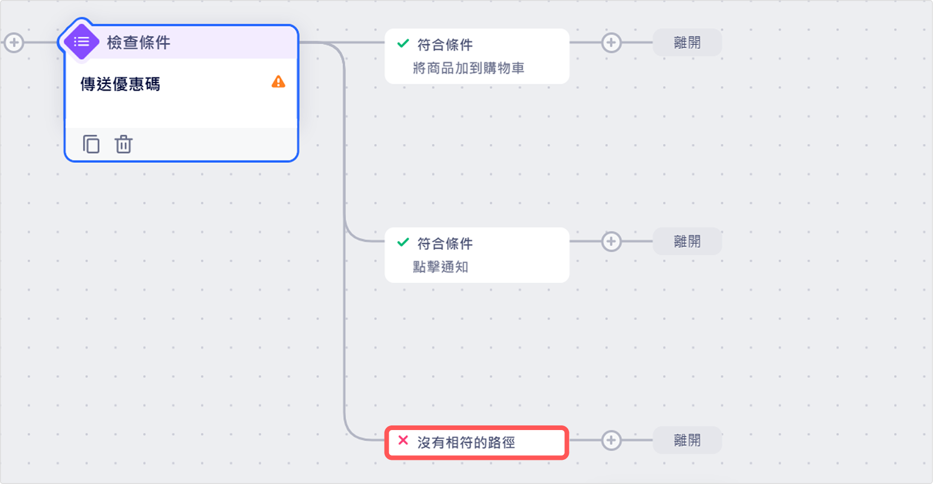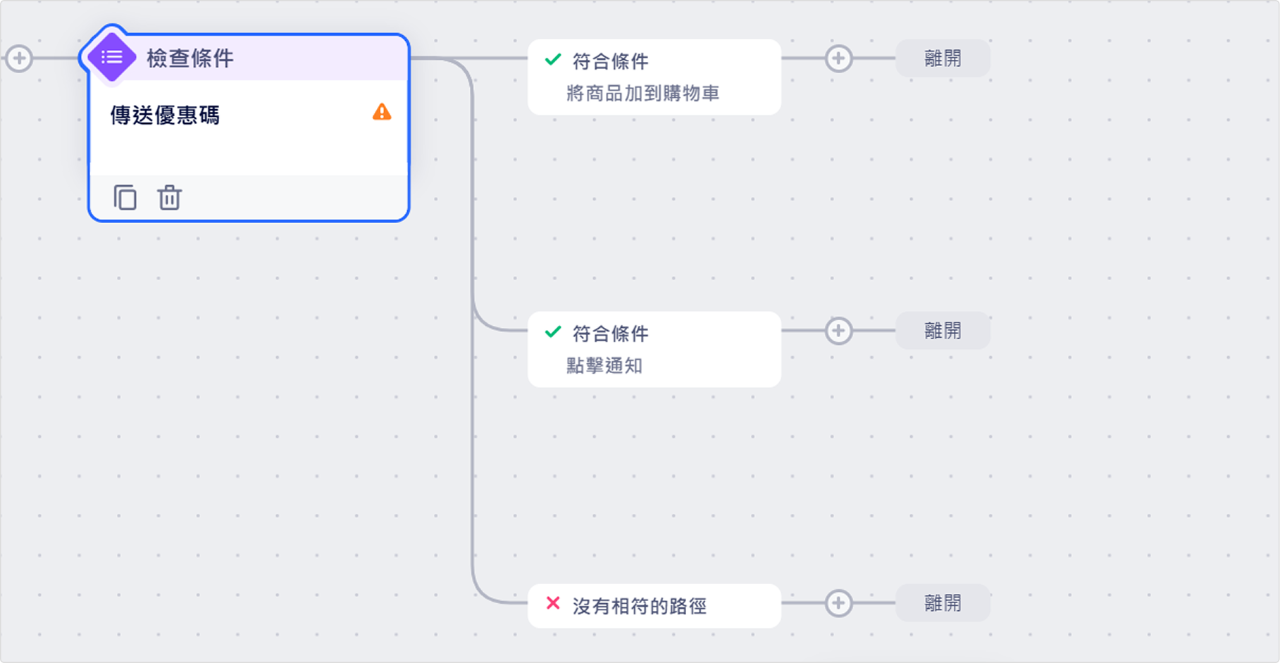 檢查條件節點可以根據使用者屬性和事件來將使用者分流到不同路徑。